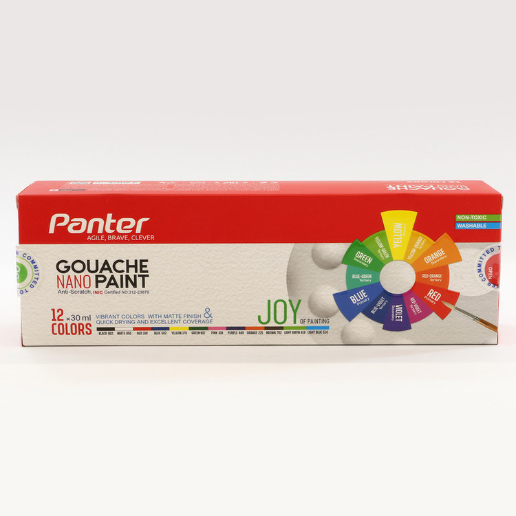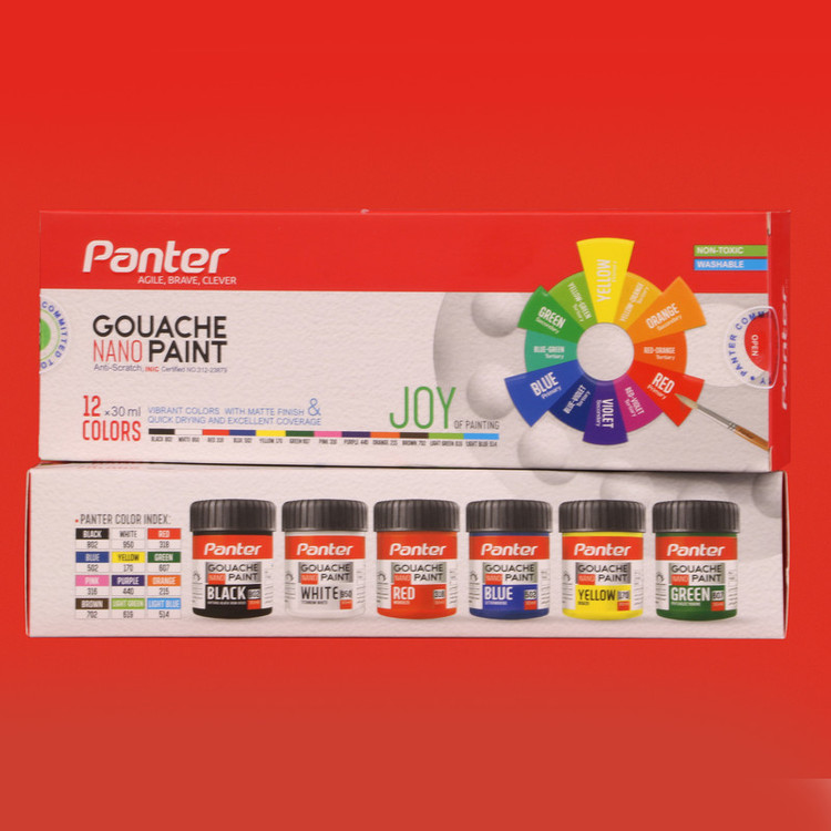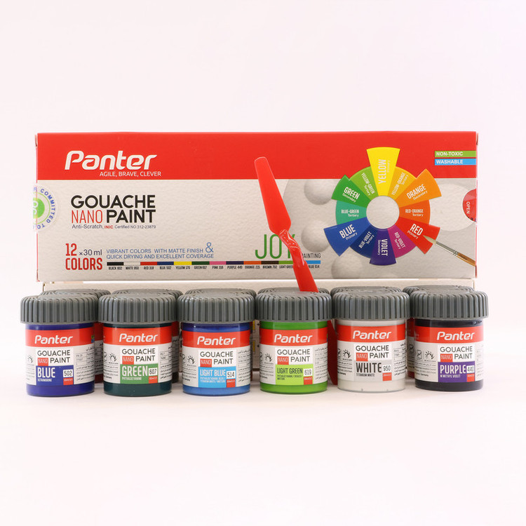 گواش به فرانسوی Gouache که با توجه به موارد استفاده آن گاهی تحت عنوان رنگ پوستر یا Poster color; نیز شناخته میشود یکی از پر مصرفترین رنگهای هنری قابل حل در آب است. نانو پوشرنگ گواش پنتر با بکارگیری فناوری نانو و با افزایش مقاومت در برابر خراش و ساییدگی و با برخورداری از رنگهای زیبا و جذاب برای استفاده روی سطوح مختلف مانند انواع کاغذ و مقوا، بوم نقاشی، چوب، سفال، یونولیت و سایر سطوح مشابه مناسب است. این محصول هنری از گروه محصولات شگفت انگیز پنتر یا ;Minimum Awesome product تجربه ای خاص و منحصر به فرد را از نقاشی برای هنرمندان حرفه ای، هنرآموزان و هنرجویان گرانمایه شامل دانشجویان، دانش آموزان، کودکان و نوجوانان علاقه مند به خلق آثار هنری زیبا و جذاب پدید میآورد.