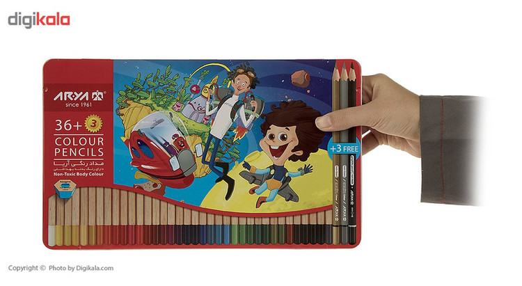 - رنگهای موجود در بستهبندی: 39رنگ (3 + 36) - دارای سه مداد رایگان با رنگهای نقرهای، مشکی و طلایی - با رنگهای درخشان - دارای نوک محکم و مقاوم در برابر شکستن - با قابلیت تراش آسان - غیرسمی - مناسب برای افراد بالای سه سال