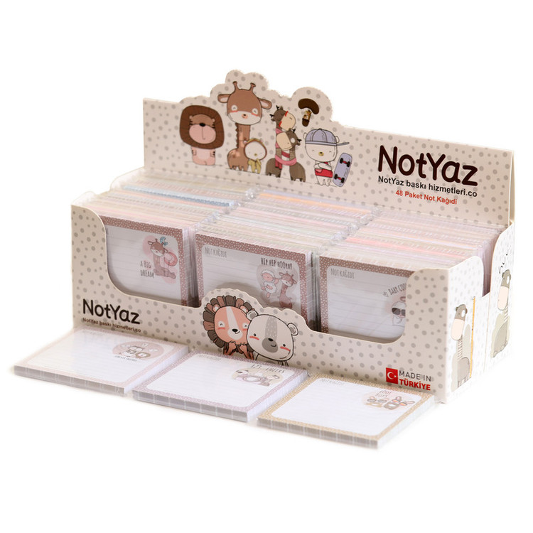 نت یاز از سال 1986 زیر نظر گروه گورفرم ترکیه اقدام به تولید محصولات چاپی و لوازم التحریر می کند.کاغذهای یادداشت نوت یاز سرچسب دار و در ابعاد 7.5x7.5 سانتیمتر و در بسته های 50 برگی از بهترین و مرغوبترین کاغذ تولید شده است. در داخل هر جعبه 48 بسته 50 برگی با 48 طرح متفاوت و فانتزی قرار دارد.