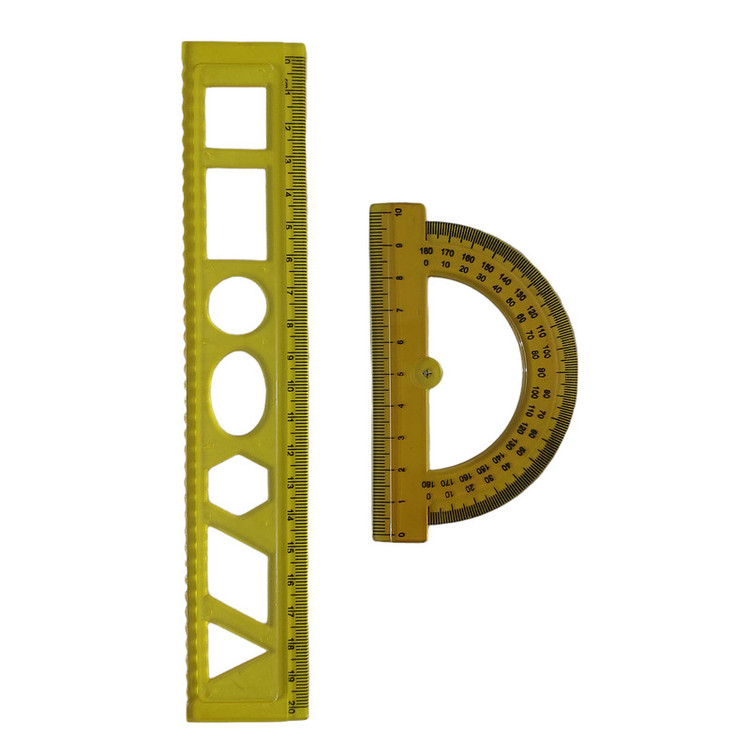 سایر توضیحات: خط کش 20 سانتی شابلون دار هندسی ژله ای و نقاله 10 سانتی 180 درجه ژله ای