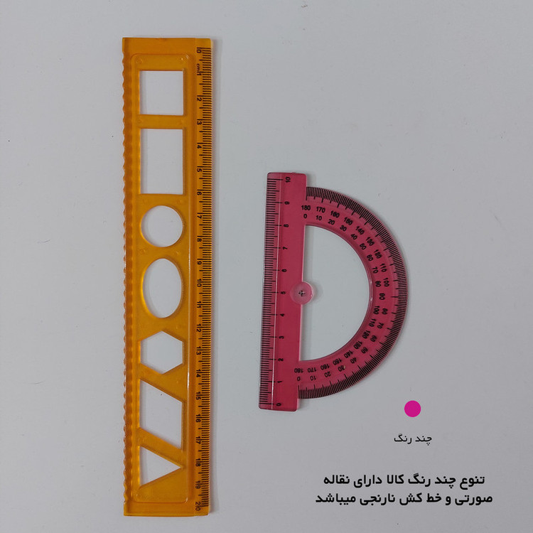خط کش 20 سانتی شابلون دار هندسی ژله ای و نقاله 10 سانتی 180 درجه ژله ای تنوع رنگ ها دقیقا مطابق تصویر و رنگ نوشته شده ی زیر عکس