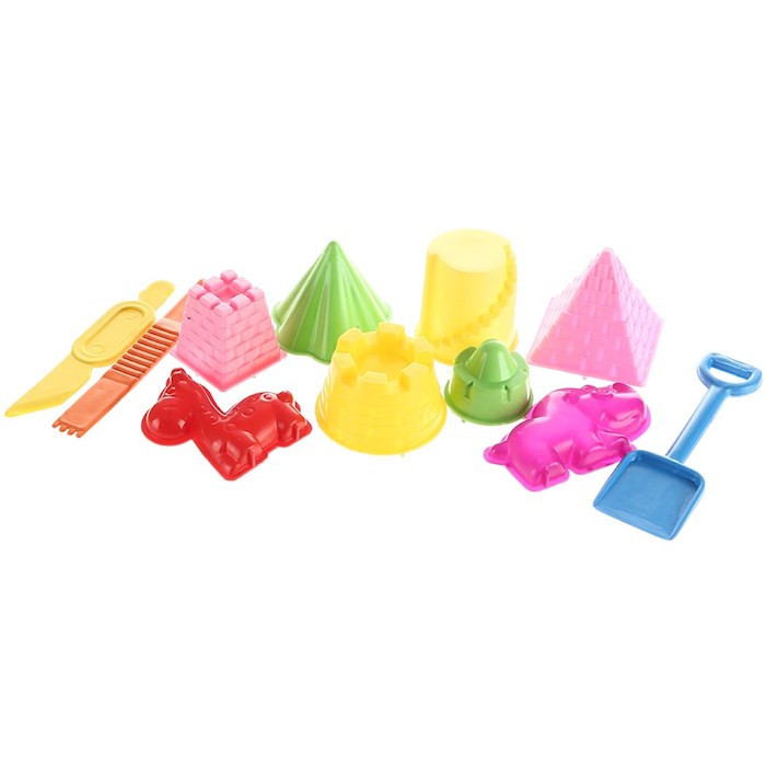 به همراه ابزار های مجسمه سازی و ساخت قلعه, شن بازی اریا 500 گرم حاوی 6 عدد قالب برای ساخت قلعه و 2 عدد قالب حیوان و 3 عدد ابزار الات برای شن بازی و سفره