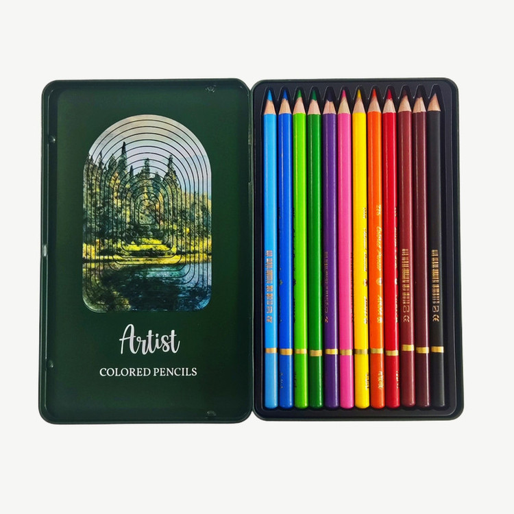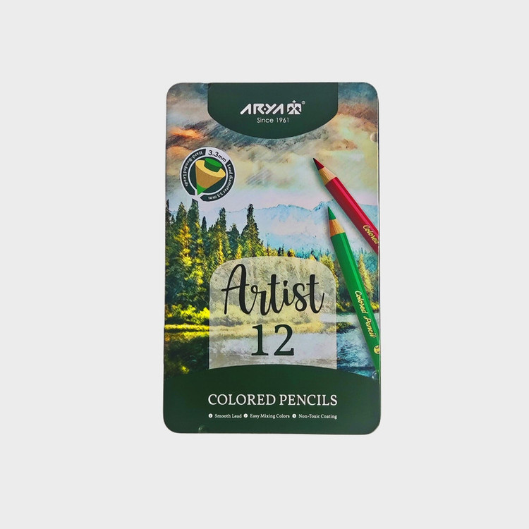 مداد رنگی 12 رنگ آریا مدل آرتیست با جعبه فلزی
